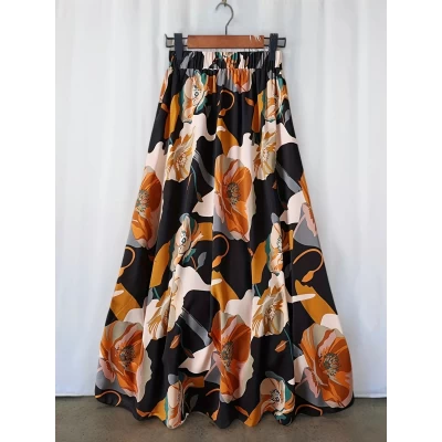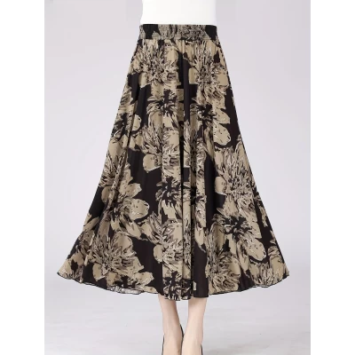 Floral elastic waist skirt, casual A-line skirt for spring and summer, women's clothing